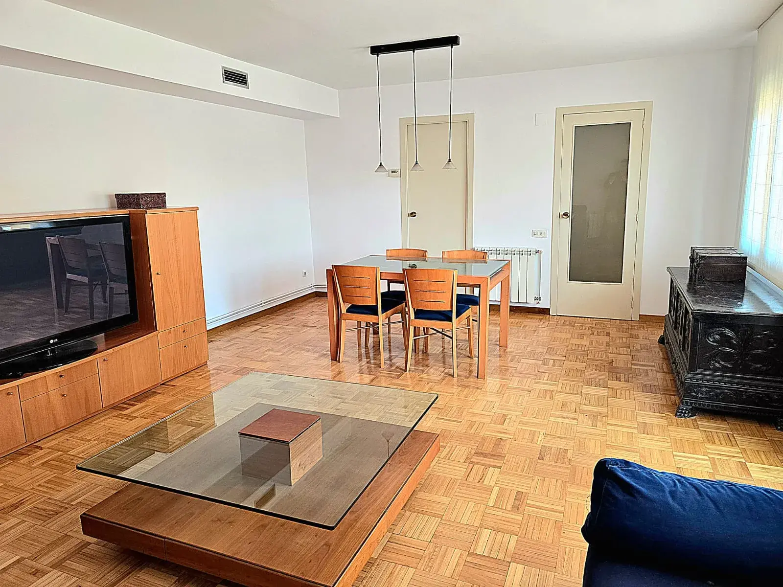 La vivienda destaca por su amplio salón-comedor, muy luminoso y confortable, con zona de sofá, mueble de televisión y mesa de comedor, ideal para disfrutar de momentos en familia o con amigos.