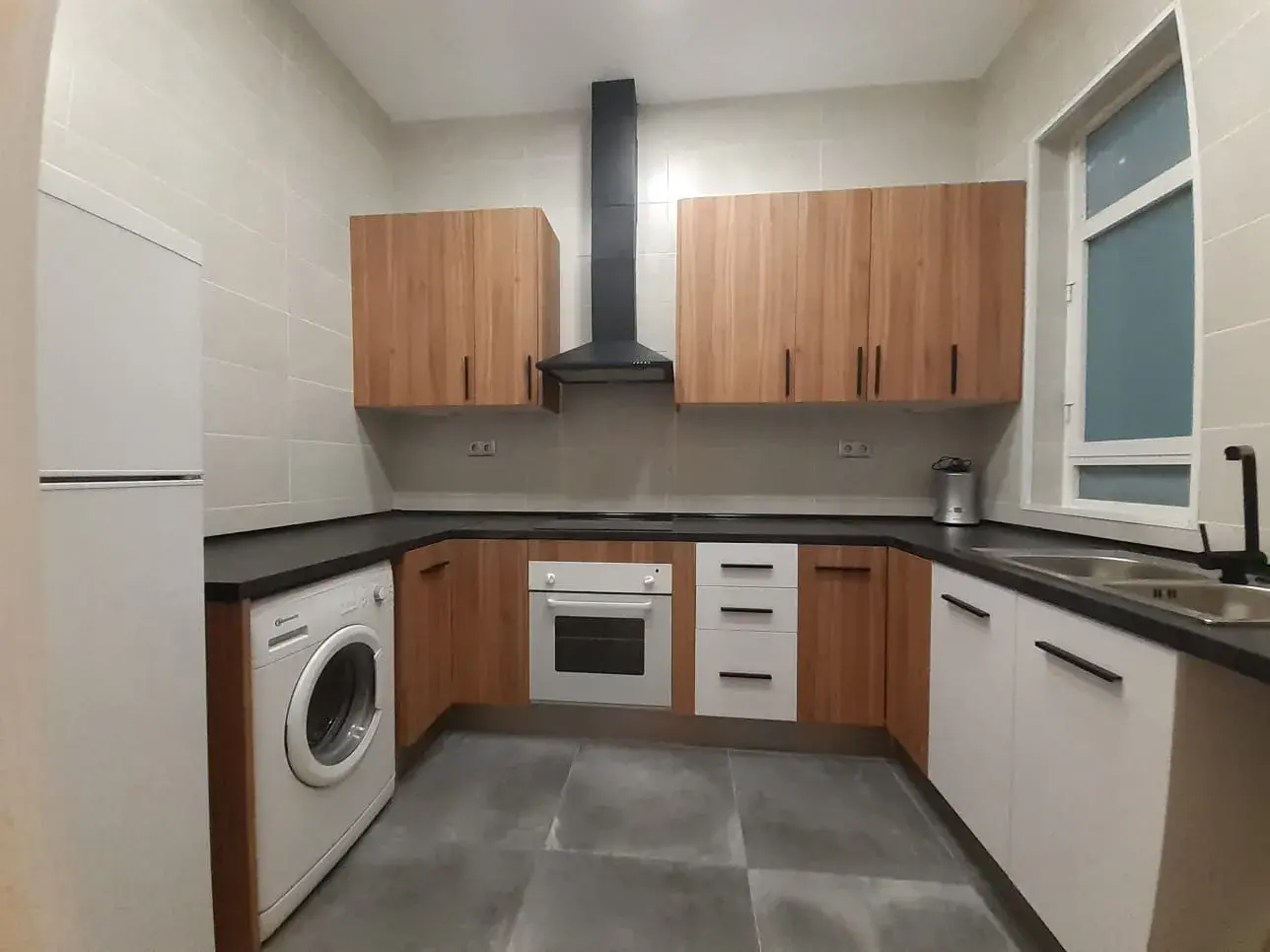 La cocina independiente, totalmente equipada, ofrece un diseño moderno y funcional con electrodomésticos integrados, amplios armarios de almacenamiento y una cómoda distribución en forma de “L” que facilita el uso diario.